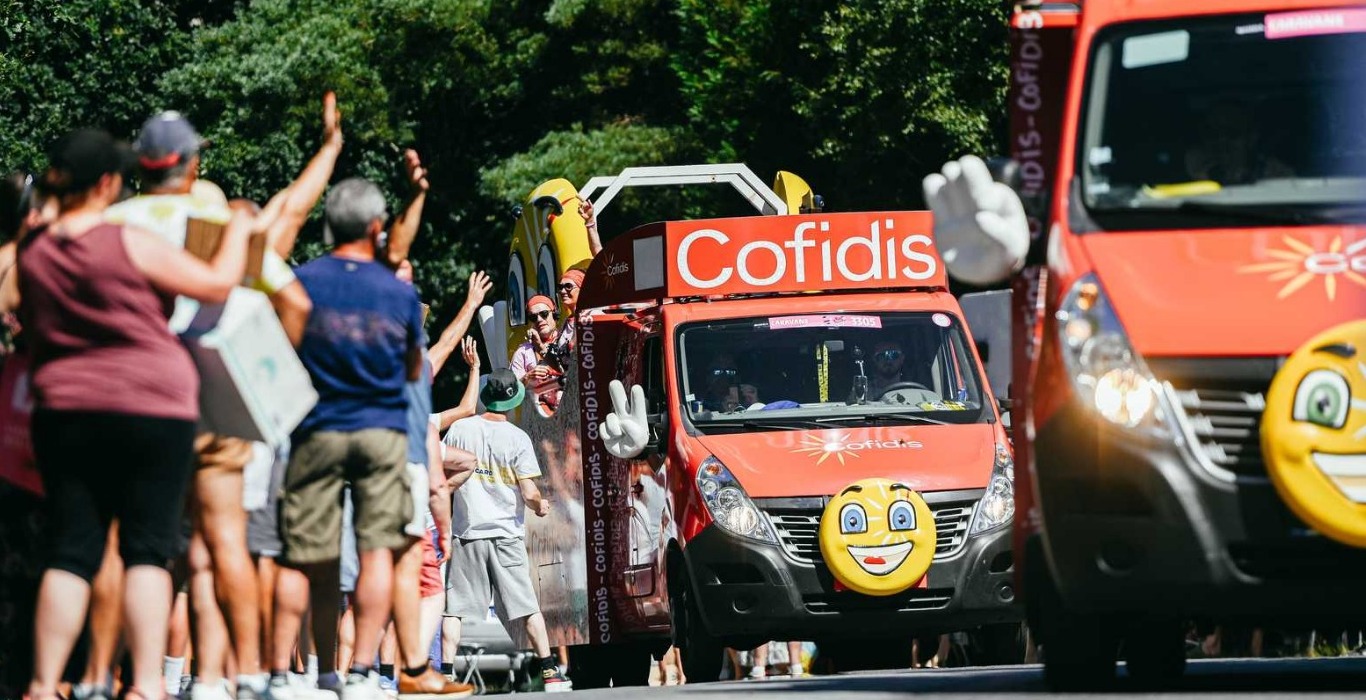 Pour Cofidis, qui n’exerce son activité qu’à distance, la caravane publicitaire, présente sur de nombreuses courses et notamment sur le Tour de France, est une merveilleuse occasion d’aller à la rencontre de ses clients. En effet, c'est la seule caravane 100% collaborateurs.